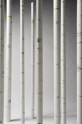 This project deals with the poetic and calming features of birch woods and highlights their relevance to human well-being. A refuge for restless heads. Based on the brightness and friendliness of birch forests, a literary installation has been created. The typical appearance of birch trees is created using poems inspired by the nature of forests, which are arranged around the trunk like the dark areas of the bark.
